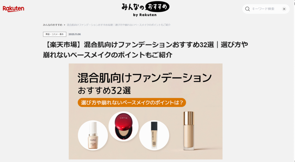 みんなのおすすめby Rakuten 【楽天市場】『混合肌向けファンデーションおすすめ32選|選び方や崩れないベースメイクのポイントもご紹介』が更新されました。