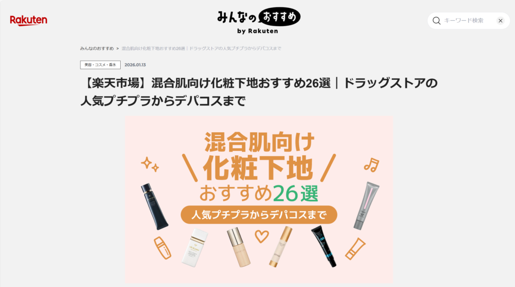 みんなのおすすめby Rakuten 【楽天市場】『混合肌向け化粧下地おすすめ26選|ドラッグストアの人気プチプラからデパコスまで』が更新されました。