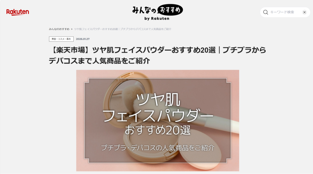 みんなのおすすめ by Rakuten 【楽天市場】『ツヤ肌フェイスパウダーおすすめ20選|プチプラからデパコスまで人気商品をご紹介』が更新されました。
